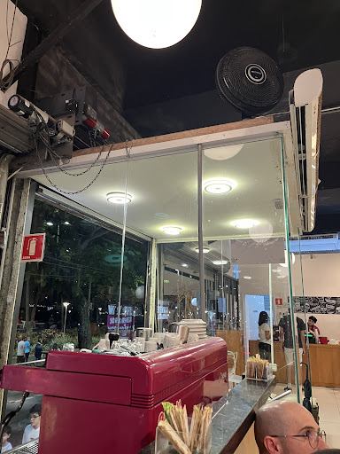 Read moreÉ bem em frente a praia. Tem sorvetes de vários sabores, por kilo, com docinhos, coberturas e farofas para complementar. Os sabores que peguei são todos deliciosos: ninho trufado, chocolate belga, macadâmia, morango, paçoquinha. Minha mãe comeu bolo de nozes e café. O bolo tem uma fatia generosa e é gostoso. Minha filha comeu açai. É bem servido e você pode pedir complementos. Ela não achou o açai de qualidade como come em SP. As meninas são simpáticas e atendem bebem, mas o homem do caixa não! O preço é alto. O sorvete por volta de R$...