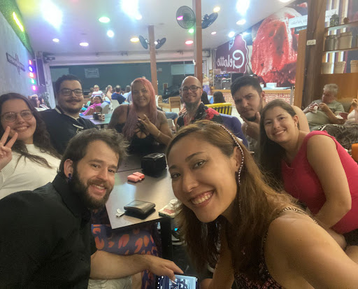 Olhando do lado de fora parece apenas uma sorveteria arrumadinha. Mas quando você entra, percebe que é muito mais que isso! Ela é decorada por ambientes, então tem a entrada que puxa para cores quentes, o fundo puxa para as cores frias, com papéis de paredes alternativos de café e poltronas de jornal. Além disso, existe uma parede do fundo que conta com um lindo neon que muda de cor. A sorveteria é impecável e enche os olhos! O clima fica super agradável e família.