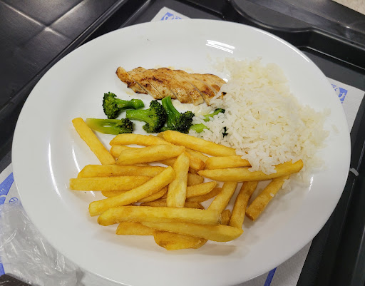 A tainha grelhada foi o destaque do dia: porção generosa, carne suculenta e no ponto certo, com tempero leve que realçava o sabor do peixe sem exageros. O frango também surpreendeu – suculento, bem temperado e com casquinha levemente crocante, ideal para quem prefere uma opção mais tradicional.
