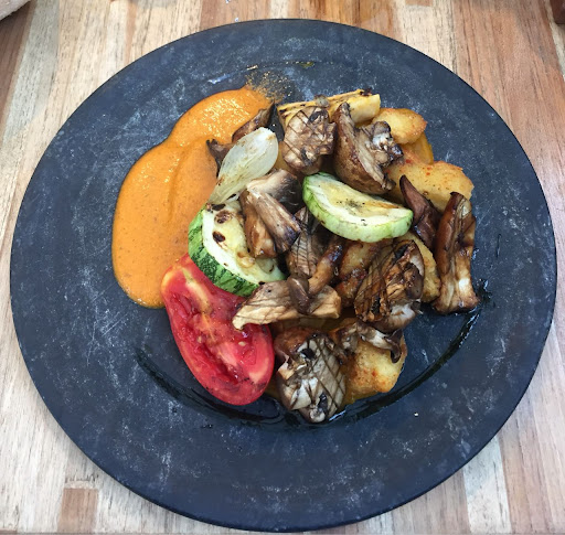 Ravioli de pupunha (palm heart) on a tasty tomato sauce with hazelnuts is a great option. Vegan barbecue would be my current recommendation (grilled trumpet mushroom stands out).