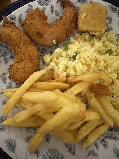 Fui com minha esposa e filha que pediu o prato kids de hambúrguer, fritas e arroz. Esse ela não reclamou.