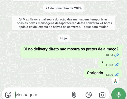 Read moreJá realizei dezenas de pedidos no max flavor e também já indiquei á muitos a amigos, porem o atendimento ao consumidor é lamentavel, alem de não responderem e ignorarem o contato feito, com duvidas para realização de novos pedidos,ainda mandam emojis tirando sarro do cliente, porque o mesmo demonstrou uma insatisfação pelo não atendimento ocorrido.Nunca dada qualquer resposta, um antiprofissionalismo total, como mostra em print no anexo. Parece até ser piada um estabelecimento tratar assim um cliente gratuitamente.