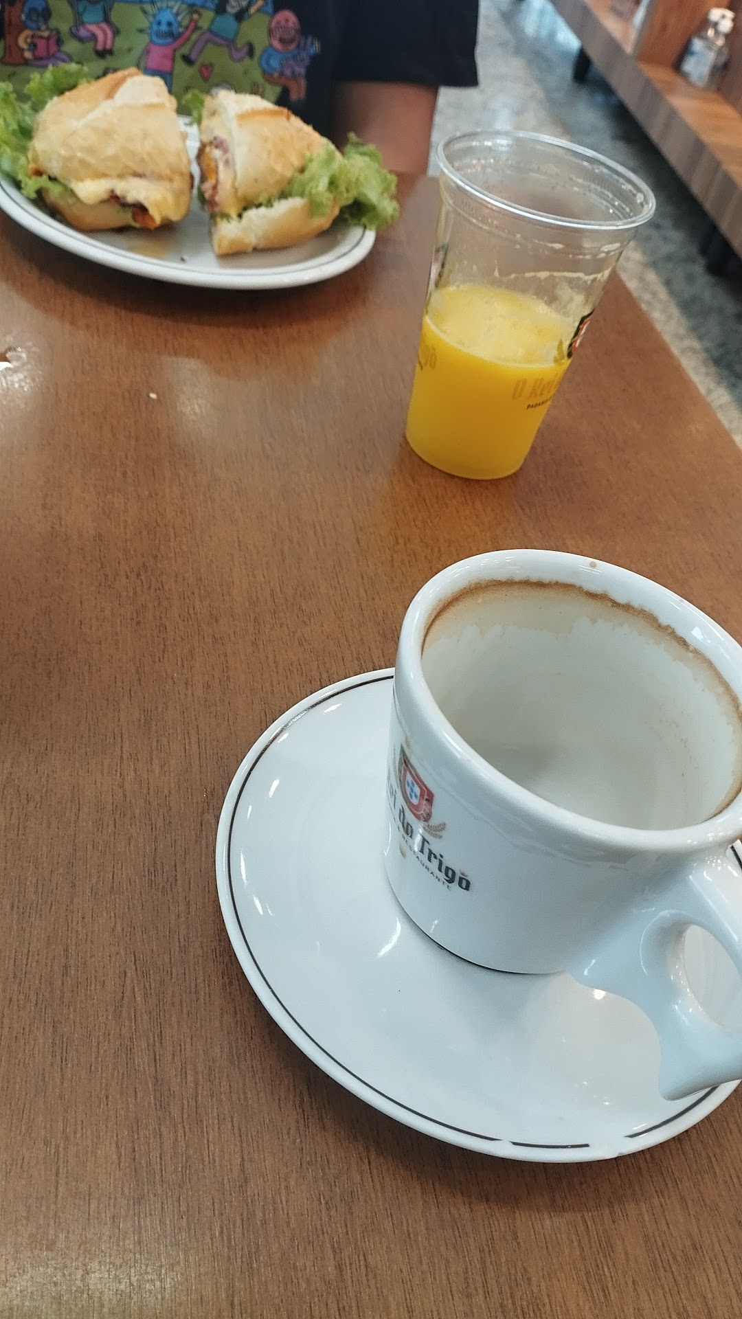 Hoje à tarde fui com uma amiga à padaria e pedimos um misto na baguete, pão de queijo com Nutella e dois capuccinos. Em relação à comida, a baguete estava muito gostosa, bem preparada e saborosa. Já o pão de queijo, infelizmente, estava bem seco, apesar de vir com uma boa quantidade de Nutella, o que ajudou um pouco.