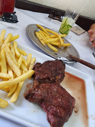 Read moreAtendimento bom. Fui em um domingo, tem um buffet de saladas básico, inclui farofa também, em separado tem feijão e arroz para que o cliente se sirva à vontade enquanto decide e espera pelo prato que escolheu. Escolhi o Bife Ancho (origem Argentina), a descrição no cardápio dizia ser 'SUCULENTO E MACIO' e não era mentira. Carne deliciosa. Um tamanho que atende bem uma pessoa. Acompanha batatas fritas (poderia ser um pouco maior a porção). O garçom simpático, PORÉM (tem que ter um, né?) quando falou das bananas à milanesa, deu a entender que faziam parte e não que eram cobradas à parte. Não é muito, mas ainda assim, é dever do garçom e direito do cliente saber o preço. Mas o atendente foi muito atencioso desde o começo. Uma amiga pediu o Bife à parmegiana, vem uma quantidade de carne que serve tranquilamente 2 pessoas. Vale a pena,...