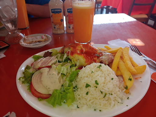 Read moreA comida é boa, bem servida, só deixou a desejar em partes no atendimento. Pedimos a comida e na hora da bebida pedimos uma Coca-Cola de 2L, produto que tinha disponível no local pra venda, porém informaram que não podíamos comprar, que o item era somente para pessoa levar embora, somente consumo FORA do estabelecimento. Que no local só pode vender lata (7,00) ou suco natural (12,90). Entendo que alguns locais não tenha para vender, o que é normal vender lata ou somente o suco, mas o estabelecimento TEM para venda dentro do local, porém para fazer a "venda casada" dos itens mais caros, não liberam para consumo interno. Então na hora os atendentes não souberam explicar, só disseram que mesmo tendo o item lá exposto no refrigerador do local não podiam vender, somente lata ou suco.