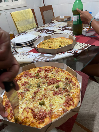 Boa noite, hoje fomos a pizzaria por indicação.. Seguem o feedback, importante a vocês. Pizza estava gostosa, massa fina, produtos bons. Cerveja original estava choca, de prontidão foi trocada, amstel e Heineken geladas, mas pouca espuma fazia a amstel. Vale a pena olhar se não é o lote. Copos para bebidas estavam com sujidade, gelo qid veio a mesa na cumbuca tinha algo amarelo preso nele. Pizza chama azeite, não tinha azeite na casa. Esse ponto pegou. Brigada do salao um pouco perdida, pedimos pizza 4 queijos e muzzarela, não sabiam qual era qual, importante pizzaiolo mostrar a brigada qual é qual, não sabiam. Isso se resolve com treinamento. Faltou um pouco de sorriso com atendente, foram solicitas, mas estavam um pouco perdidas quando restaurante encheu. Tv muito alta, mas baixaram o som quando pedimos. Banheiro sem papel pra enxugar as mãos, sobrou para a famosa secada na camiseta. Conta chegou, pedimos levar o que sobrou pra viagem, conta já emitida, aí fomos informados sobre cobrança extra pela caixinha (preço da pizza cobre este custo ja, até porque nem todos clientes levam sobras. Quem sabe um ventilador em cima das mesas internas como tem para o caixa deixe ambiente um pouco mais fresco, estava bem quente. Pedimos destilado, mas não tinha, mas não sei se servem por lá (cachacinha), Então fica só o comentário. Reboco ou pintura soltando no canto da mesa abaixo da TV, vale um retoque na pintura interna pra deixar ambiente mais...