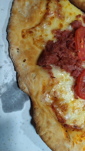 Após um período, fomos informados que estávamos sem energia no nosso apartamento, fui até a mesma atendente solicitar o pedido para comer em nossa mesa e informei porque estávamos sem energia em casa. A mesma atendente, super grosseira deu um suspiro revirando o olho foi informar ao pizzaiolo.