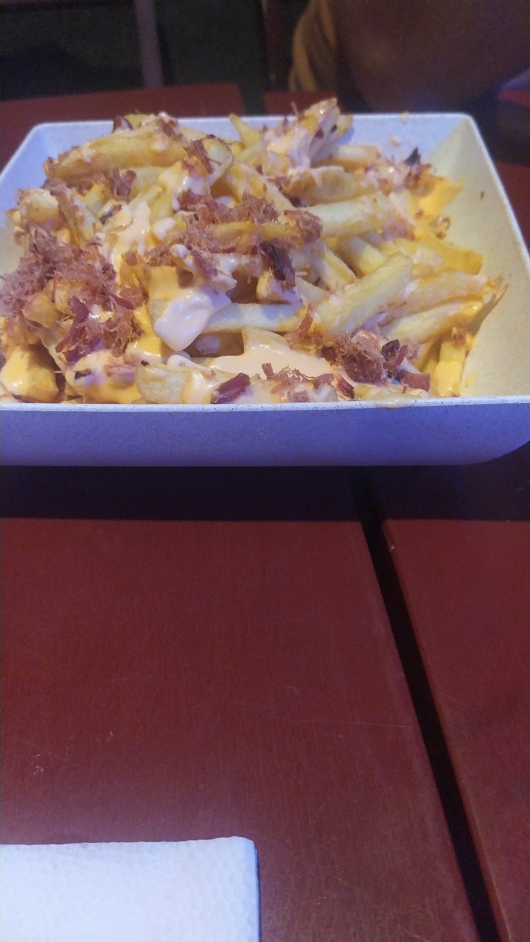 Read moreVisitei o local pela primeira vez, junto da minha namorada. O local fica bem escondido, já que a faixada de outra loja ofusca TOTALMENTE a entrada do estabelecimento. O acesso é por uma escadaria, o que impossibilita (ou talvez só dificulte muito) a entrada de cadeirantes, por exemplo. Os atendentes são bem prestativos, um ponto positivo. O grande atrativo do local é o karaokê (e as mesas de sinuca). Tem um visual de buteco, o que não é ruim. O cardápio que recebemos estava bem... "engordurado", dificultando um pouco a leitura (ainda mais por conta da iluminação). A GRANDE maioria dos pratos no cardápio não estavam disponíveis (acho que não tive sorte no dia), então acabamos pedindo uma porção de batata frita com queijo. Isso me decepcionou, pois realmente pareceu que fritaram as batatas e, simplesmente, colocaram uma fatia inteira de mussarela fria por cima. Sobre as bebidas... Tinham boas opções. Grande destaque para a Alexsander (que, além de ter o meu nome, estava realmente muito boa kkkkk). Mas resumindo... É um ambiente diferente, o karaokê torna a experiência divertida. Mas...