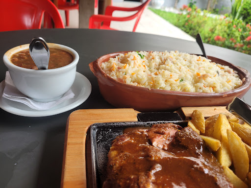 Para acompanhar o prato pedidos uma porção de feijão e de arroz, mais ou menos R$ 20,00 e R$ 30,00 respectivamente.