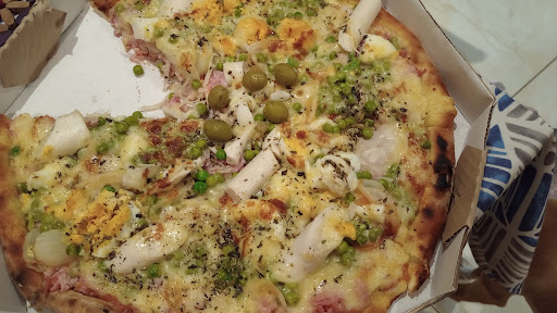 Hoje mais uma vez de terminar o dia com uma pizza, como é sábado, nada melhor que pizza! A aparência da pizza é bem bonita, metade completamente vegetariana e inclusive sem queijo, e outra metade bem mais gorda, com presunto, queijo e tudo mais. A metade vegetariana pende mais pra escarola, que deixa essa metade um tanto mais amarga e com um sabor levemente puxado pra escarola, o que eu pessoalmente não curto muito, os outros ingredientes tem um sabor um tanto mais superficial, mesmo o palmito, que vem em boa quantidade, e geralmente tem um sabor bem característico, acaba se perdendo um tanto no sabor da escarola. A metade À Moda, tem mais um sabor de pizza clássica, puxado um pouco mais pra boa mistura de queijo e presunto, dá bem mais a sensação de gordice mesmo. Os outros ingredientes parecem também um pouco superficiais também, mesmo tendo calabresa e palmito, ambos ficam mais fracos, mas não tanto quanto a parte vegetariana, aqui sabores se misturam mais, dando aquela boa sensação da mistureba com queijo, algo mais clássico da pizza portuguesa, só que com outros ingredientes. A consistência da pizza é muito boa, ingredientes que não se desfazem e deixa toda mordida com uma boa sensação que não foi assada demais. A massa é fina e aparentava que não ia suportar a quantidade de recheio, que era consideravelmente boa, mas deu conta do recado, mesmo dobrando um pouco demais, não deixava o recheio cair demais. O sabor também era bom, não deixando se disputar com o sabor do recheio, mas também não sendo nula demais. As azeitonas complementam a pizza, sem caroço estava boas e serviram bem de fechamento pra pizza. Apesar do atendimento ter sido super rápido, inclusive meio que desligando na minha cara, a pizza chegou bem rápido pra um sábado à noite, menos de uma hora e sem problemas até que agradou bastante. No geral, uma pizza muito boa, com sabores diversos que fazem uma boa mistura, mesmo puxando sabores pra ingredientes específicos, nada saiu muito do roteiro de uma boa pizza, o preço é um pouco alto mesmo pros padrões do local, mas pode valer a pena.