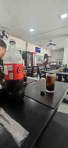 Read moreAmbiente não tem como dar nota , é um local sujo. A comida é até gostosa mas sinceramente não vale a experiência, eu simplesmente não consegui parar de olhar para as sujeiras e imaginando como estava o estado da cozinha ( não vi como estava ) fiquei pensando : se não limpam o que está visível imagine aquilo que não conseguimos ver . Eu comi mas parei para pensar hoje e me arrependo , serviram o feijão em uma cumbuca de plástico suja ,sim estava cheia de marca de sujeira . Prato com a borda suja como se tivesse sido mal lavado . A borracha de vedação do balcão refrigerado simplesmente cheia de bolor e escura , as câmeras de segurança cheia de pó, o ventilador muito mas muito sujo . O chão nem se fale . O atendimento foi mediano ainda bem que não cobram serviço de mesa . O preço não vale o prato servido nem de longe . Fui 1 vez e não tenho pretensão nenhuma de retornar . Espero de coração que mudem o ambiente e o torne mais limpo e agradável pois a comida como dito...