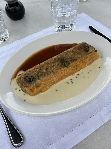 Read moreMeu grupo era de bariatrico, gente com refluxo ou extremamente saudavel. No jantar. Cedo. Va vendo. Valet arrombado mas ha mtas vagas no entorno. O Ambiente eh lindo, os garcons parecem especiais mas aquele truque de despejar a garrafinha dagua que ja eh minuscula (200 miseraveis ml) e levar o fundinho... vcs nao precisavam disso. Perguntei se o robalo era fresco, afirmaram q sim mas veio seco, zero frescor. O polvo era decente, macio, mas nao "brilhava". Eu gosto com mais temperos, louro, alhos, azeites. A rolha do vinho = r$ 120, guardamos nosso vinho e tomamos um vinho medio da casa mesmo, de 180. Fizeram a gentileza de nos presentear com entrada pequenina para q conhecessemos (insistiram 5 vezes e negamos 5 vezes). So queriamos jantar e dormir cedo. A entrada era dispensavel. mesmo. Tinha em todas as mesas um item muito bonito - uma pimenteira bola de porcelana azul. Abri pra ver se era pimenta branca ou preta (a preta ataca a gastrite). Era preta. Ok, fechei. Ao final retiraram os pratos e a pimenteira. Como assim? Conta : 500 o casal, com vinho, sem sobremesa, sem entrada. Entendi porque tinha gente q ja estava la quando chegamos e continuava la quando saimos. Eu devo ter acertado um dia ruim, a visita foi durante a semana. Ou perdido o paladar...