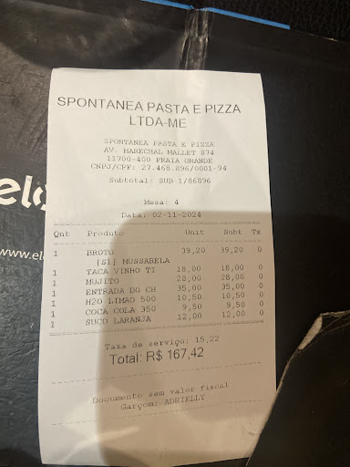 Read moreFrancamente minha experiência foi ruim ao telefone. Ao ligar para solicitar reserva de mesa, a moça não deu muita atenção porque estava "tirando milhares de pedidos" e em função do feriado não poderia reservar a mesa. Eu estava com duas senhoras uma de 87 e outra de 84 anos que são minhas avós e moram em praia grande. Mas disse que eu seria muito muito atendida.Chegando lá tinha várias mesas disponíveis e até a horas que saímos não lotou o salão. Das 3 pizzas que eu pedi apenas uma estava boa, a de calabresa estava salgada, a de muzarella estava salgada deve ser o queijo de baixa qualidade, a de rúcula com mozarella de búfala faltava recheio,, mas estava saborosa,o atendimento é péssimo, pessoal perdido no salão, as vezes vinham 3 garçons te atender, outras vezes não vinha ninguém. sem falar que marcam na comanda pedidos e esquecem de servir. NÃO peçam o vinho da casa, é horrível, é servido na temperatura errada talvez para disfarçar o sabor....e a péssima qualidade Eles cobram convert artístico e não avisam com antecedência, é sabido que não existe uma lei que proíba a prática, mas tbm não existe uma lei que obrigue o pagamento, porém em qualquer situação deve ser avisado cobram taxa de serviço.... serviço péssimo... sobre o pagamento de 10% só tenho uma coisa a dizer.. De acordo com a Lei nº 13.419 (Lei das Gorjetas) NAO É OBRIGATÓRIO.... não volto mais. Melhor buscar outras opções que tem na...