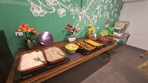 Read moreDei três estrelas pela minha expectativa. Achei que fosse encontrar algo diferente; uma propostas diferente dentro do universo vegetariano; como por exemplo, nhoque de mandioquinha recheado com gorgonzola na manteiga de ervas; quibe assado de quinua com ricota; risoto cremoso de aspargos com pimenta rosa entre tantas outras receitas diferentes. Mas, infelizmente me deparei com um cardápio comum, com uma bancada de saladas, e os quentes tinha o básico: arroz, ervilha, abobrinha recheada com carne de soja. Eles servem um caldo que acabei comendo a lentilha pq estava sem identificação. Enfim, a comida não é ruim, o lugar é bom para aquele momento que você precisa almoçar de forma rápida (fecham às 15hrs) e que dá preferência para saladas sem de forma necessária ser vegetariana como estar, por exemplo, em uma dieta hipocalórica é um ótimo lugar pra ir. Mas, se procura um cardápio elaborado dentro do mundo vegetariano/vegano não...