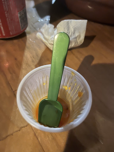 Passou mais 10min e meu lanche chegou. Comi sozinha enquanto toda minha família na mesa já havia comido o deles.