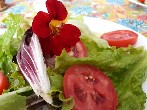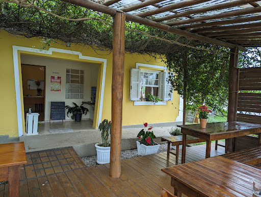 Lugar muito gostoso para um café de fim de tarde. Há mesas internas e num deck externo sob um caramanchão, onde se pode ficar com o pet. Tudo é saudável, com ingredientes naturais, orgânicos e integrais. A simpatia do atendimento também contribui para a experiência ser muito gostosa. Você pode tomar um suco de ingredientes do próprio local (tomamos um de limão, gengibre e cidreira, super refrescante) ou um café orgânico feito na hora, e comer as delícias da casa: comemos uma torta de banana que parecia grande demais para a ocasião, mas que foi inteira, de tão gostosa... Antes de sair,uma olhadinha nos produtos do armazem: pães integrais feitos no local, bolos, café orgânico em grãos, feijão orgânico, sucos engarrafados,mas de processo orgânico de fabricação, tudo de ótima qualidade. É um grande achado, lá no final da Estrada do Vinho, que...
