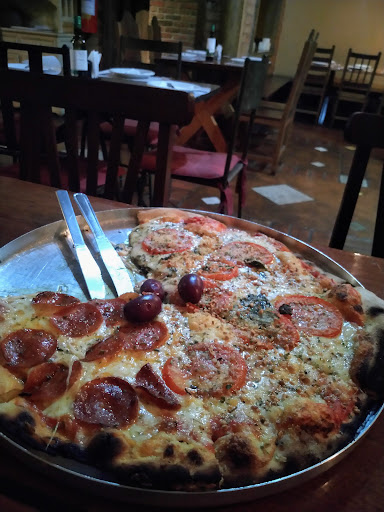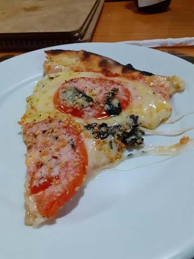 A pizza estava muito saborosa. Chegou bem rápido e com aquele gostinho de pizza no forno a lenha que todos amam. O atendimento foi bom, os pratos tem nome de bairros do Rio de Janeiro, mantendo com o tema de 'pizza carioca'. O ambiente é bem agradável, tendo aquele clima de taverna italiana aconchegante, com iluminação moderada e música ambiente. A pizza estava bem recheada, com a massa fina e crocante (do jeito que eu gosto), a única crítica é que estava oleosa demais. Pedimos uma calabresa bem acebolada e veio com bastante cebola mesmo, alguns lugares você pede com mais ou menos ingredientes mas essa informação normalmente nem é passada ao cheff. Em geral um ótimo lugar para comer pizza em São Roque, e tem a maior vantagem de ABRIR DURANTE A SEMANA ATÉ TARDE, coisa que é muito rara em São Roque, se for segunda-feira é você quiser uma pizza saborosa 9 horas da noite essa é a sua única (e...