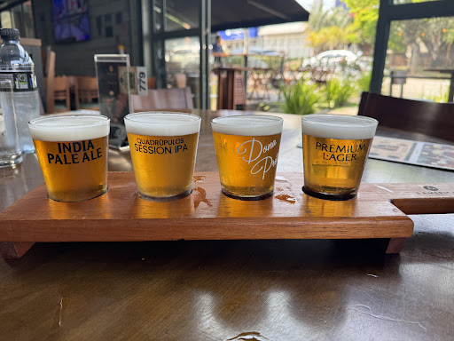we went for a walk and got caught in a rain storm and fortunately found this newly built boozer serving its own brewed range of 13 beers including an IPA 4.8% ABV - i liked but could only have the one (doctors orders). They also serve a good choice of home made food which seems great value! T-bone steak for 69 Reals - about £13 Great atmosphere for a Tuesday evening (might be because leading up to Christmas), my only complaint, was the toilets downstairs opposite a creche, males and females side by side and appearing to not be lockable! Best of all, just 10 minutes walk from our apartment. -...
