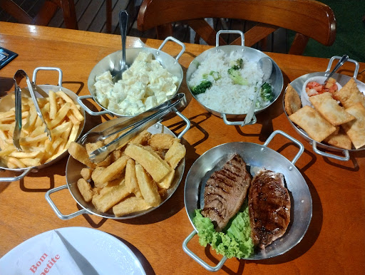 A entrada era um prato de arroz e macarrão, dois pedaços de frangos, uma salada, 4 pedaços de batata rústica e uma mandioca, que parecia ter sido requentada 10 vezes. Oleosa, péssima.