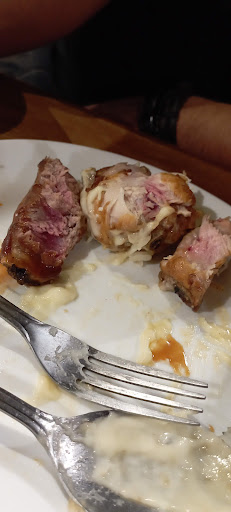 Entretanto, foi padrão cobrarem o preço alto por um prato de petiscos que, segundo o cardápio, era para ser de filé mignom. Mas estou para lembrar se filé mignom tem nervo e gordura. Me senti enganado, mas havia começado pela polenta e anel de cebola, que estavam muito bons, resolvemos concluir o consumo. Levamos o que sobrou para consumir mais tarde em casa, porém, foi aí que tivemos certeza que aquilo não era mesmo migno, segundo o cardápio.