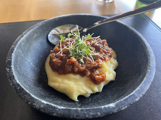 Pedi o prato que prometia Wagyu com molho de tutano e mil-folhas de batata, mas a carne estava extremamente nervosa, impossível de cortar — mesmo com faca apropriada para carnes — e a batata estava crua por dentro. Uma decepção enorme, especialmente considerando a proposta e o valor cobrado.