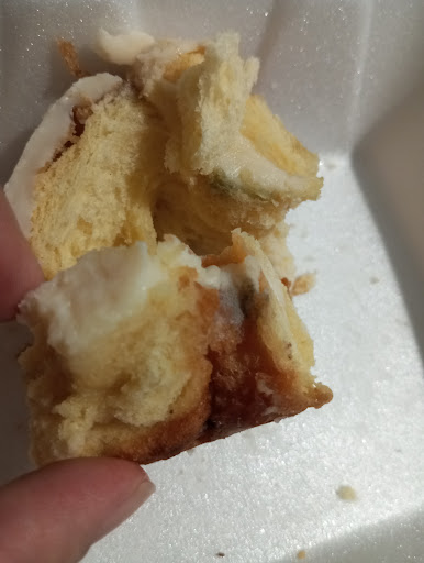 Read moreHorrível! Deveria fechar! Não tem respeito pelo cliente vendendo coisas estragadas e perigosas pra saúde. Comprei vários salgados, pães e um donuts. O donuts era de chocolate branco e recheio de creme de limão, porém quando eu estava comendo, na metade dele percebi uma mancha e me deparei com bolor, fungo, mofo, não sei exatamente o que seria, cortei em vários pedaços e achei mais na parte interna. Tentei ligar diversas vezes e ninguém atende. Uma falta de respeito e absurdo um estabelecimento vender comida nessas condições. O pior é saber que comi metade do donuts e agora estou muito preocupada com minha saúde. Descaso total. Nem consigo imaginar como deve ser a higienização por...