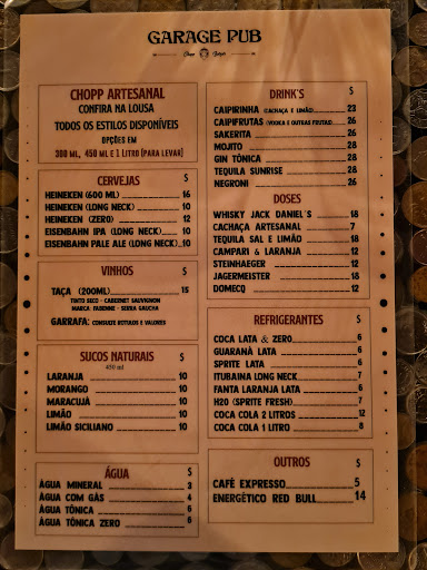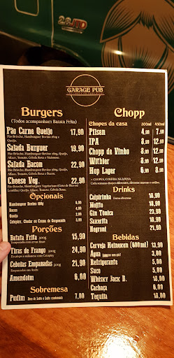 Bebidas: Possui 6 torneiras de chopps artesanais com estilos variados (experimentei todos) e fiquei fã do Red Ale (da fabricante Truppe) e do Russian Imperial Stout (não lembro a marca), chopp sempre gelado ao ponto do estilo, ou seja, perfeito! Há também a parte de drinks, onde o mais elogiado é o Gin com tônica e morango (da próxima irei experimentar).