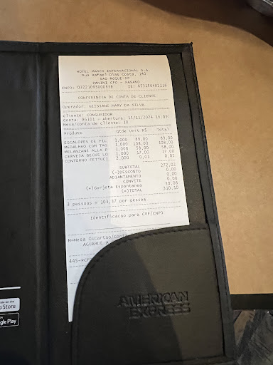 Read moreEstiver hoje para almoços neste restaurante, após quase 10' vieram nos atender, a comida demorou muito, inclusive mesas com pessoas que chegaram depois de nós, foram atendidas antes e os pratos eram semelhantes. O da minha mãe veio frio, o do meu marido que foi uma lasanha veio seca e o que salvou foi o meu, tivemos que chamar o garçom para saber o que houve com o pedido tão demorado e mesmo sabendo disto ainda não foi cobrado 14% de taxa de serviço .... JAMAIS VOLTAREI..... poderiam ter cobrado o justo desde que tudo estivesse razoável .... seria bem interessante puxarem nas câmeras para ver a veracidade...