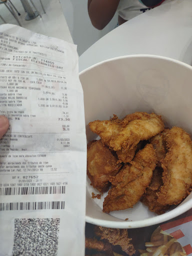 Adoro o Frango e os lanches do KFC, mas no caso da loja local , ela e muito mal administrada pelo franqueado, vou citar as minhas ultimas(ultimas mesmo) tres compras, as duas primeiras pedimos via aplicativo para entrega e vieram errados os pedidos e na segunda o frango nao estava cheirando bem e os molhos nunca vem com a mesma quantidade e geralmente estao vazando(reclamamos via aplicativo).Na ultima fomos ao restaurante comer na loja e pedimos uma promocao aonde nos ganhavamos um Pedaço junto com o lanche, e como gostamos do pedaço e nao das tiras resolvemos pegar , quando fomos comer para nossa surpresa, ao inves do pedaço veio uma tira, fomos reclamar e o atendente disse que resolveu colocar a tira ja que nao tinham pedaço, simples assim sem perguntar para o cliente sendo que o mesmo nao gosta da tira e a mesma tem o valor bem menor do que a do pedaço.Infelizmente como vimos em outros comentarios os lanches ja vem errado por padrão no delivery , e confirmamos que presencialmente eles tem o mesmo problema, infelizmente e a unica franquia do KFC na cidade, mas felizmente abriu uma franquia concorrente talvez tao boa ou melhor..Infelizmente KFC so quando passearmos fora...