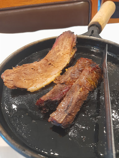 Read moreA costela é realmente sensacional, mas eu não voltaria a comer no local, pois achei o buffet muito caro: 46,50 por adulto para comer arroz, feijão, salada, batata e polenta murchas, e bolinho de costela (que apesar de muito saboroso, tinha bem pouca carne), e pagar a carne à parte: 78,50 a porção de costela & picanha para 2. A picanha é boa mas a costela se destaca. Minha recomendação seria pedir a costela e comer em casa. Não sei se foi o horário, chegamos perto das 13:30 no sábado e sentamos no mezanino: a batata e a polenta do buffet lá em cima estavam meio murchas e meio frias. Não correspondeu a outras avaliações que li aqui. Por outro lado o mezanino é mais silencioso e agradável do que o...