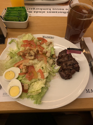 Read moreO Madero é um clássico e a fama dos seus hambúrgueres é tão grande quanto seus preços. O segredo de uma boa experiência gastronômica no Madero está justamente no hambúrguer, é sem erro! Saboroso, suculento, o molho é delicioso e o pão é um dos mais macios e crocantes que eu já experimentei na vida! O cardápio também oferece opções de carnes e massas, e petiscos de entradas. Optei por experimentar o bife de chorizo (R$89,50) e a linguicinha de pernil defumada, além do pão de alho (R$14,90). Esse último, delicioso! Sequinho por fora e cremoso por dentro, com um sabor suave de alho. Já a linguicinha, apesar de saborosa, achei seca. Pelo valor, R$31 por 130gr, esperava um sabor inesquecível e um ponto que fosse mais agradável… O mesmo posso dizer do bife chorizo: esse clássico corte argentino foi servido no ponto que eu pedi (ao ponto para mal), mas achei a carne meio dura, foi necessário um esforço considerável para conseguir cortar a carne, algo que não é comum tratando-se de um chorizo. A carne é servida com um acompanhamento a gosto do cliente, optei pela farofa e foi uma decisão acertada, pois era maravilhosa! Definitivamente o ponto forte da casa é o hambúrguer, pedimos o clássico “Madero” (R$R$46,90) e estava perfeito! Outro destaque: a cartela de drinks… O gin tônica com tangerina é maravilhoso! A casa também se destaca pelo atendimento e cordialidade de seus atendentes, além de ter um ambiente gostoso e confortável. Vale pela experiência e para saborear excelentes opções de hambúrgueres… Fora disso, é optar por ser arriscar por...