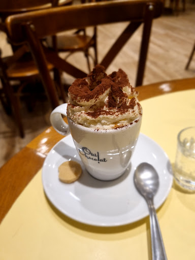 Pedimos um pão de queijo na chapa (R$19,00) bem gostoso e quentinho. Um expresso con pana (R$14,00) que é um espresso longo com chantily polvilhado de cacau em pó muito gostoso e um capuccino Nutella grande (R$18,00) que vem espresso, Nutella, leite, espuma de leite e cacau em pó que também estava muito gostoso porém poderia estar mais servido de Nutella, vem bem pouquinho. Também pedimos um pedaço de torta de caramelo e chocolate meio amargo deliciosa e bem equilibrada, sem exagerar no doce.