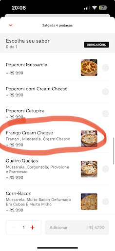 Solicitei o pedido pelo Ifood, primeira vez comprando neste local por indicação, solicitei uma pizza de frango com cream cheese e no cardápio não falava que vinha com milho, pois NÃO COMO O MILHO. Ai para minha surpresa chegou em casa, aquela vontade de comer uma pizzinha e fome, aiii a surpresa da pizza cheia de milho, entrei em contato com a pizzaria que prontamente me respondeu que no cardápio diz SIM que vinha milho, tirei um print do cardápio porém não consegui enviar pelo chat do Ifood e também não encontrei o WhatsApp dessa pizzaria para encaminhar, sem resposta pedi meu estorno diretamente ao Ifood. Segue o print do cardápio onde o cardápio atendente disse que estava correto e...