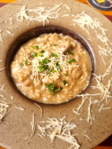 Pedimos o fettuccine ao sugo com ancho grelhado (R$76,80) e o risoto de mignon (R$74,80). Para beber pedimos uma Coca cola zero (R$8,90) e um chopp Brahma de 500ml (R$19,90). O risoto está muito saboroso, mas o fettuccine nós recebemos com contra filé ao invés de bife ancho. Questionamos o garçom pois o prato de fettuccine com contra filé é muito mais barato (R$34,90), o dono veio falar conosco e explicou que não tinha ancho e por isso colocou o contrafilé e que o preço era o mesmo, achamos estranho mas okay. Depois eles ofereceram mais um bife de contrafilé para compensar.