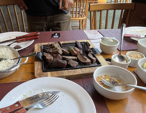 Read moreHoje 08/05/24 estive no local para almoçar com alguns amigos e comemorar o aniversário de um deles, e acabei tendo uma péssima, mais muito péssima experiência mesmo. A atendente que nos recepcionou foi muito educada e atenciosa, nos apresentou o cardápio e nos recomendou um prato que seria, mas adequado e vantajoso para nós, por fim optamos pela sugestão dela, realizamos o pedido e ficamos aguardando o preparo do prato. Antes de chegar nosso pedido, observamos as outras 3 mesas que estavam ocupadas no restaurante e ficamos olhando os pedidos delas chegarem e quando chegou nosso pedido percebemos que a sugestão da recepcionista não foi a das melhores oque era para ser vantajoso acabou sendo prejuízo. Mas até aí blz, o problema foi o prato que nos foi servido uma tábua de carne queimada e seca com aparência de carne requentada. Chamamos a atendente e mostramos para ela o prato que concordou conosco que era impossível comer aquilo, ela até sugeriu preparar outra carne mas não tinha condições de esperar, então conversamos com ela e sugerimos que ela nos dessem um desconto já que não comemos a tábua de carne, apenas arroz e batata frita, ela concordou e na hora de pagar para nossa surpresa o desconto proposto foi de 20% do valor do prato que havia dado 200 reais. E detalhe ainda foi cobrado 10% da mesa. Eu achei um absurdo, uma vez que o valor do prato é de acordo com a carne e não comemos a carne, a conta foi dividida e paguei 48 reais por um prato de arroz com batata frita. Na foto fica nítido a carne queimada e seca para um prato que estava na mesa a pouco tempo. A parte vermelha da carne estava seca como se estivesse sido preparada no...