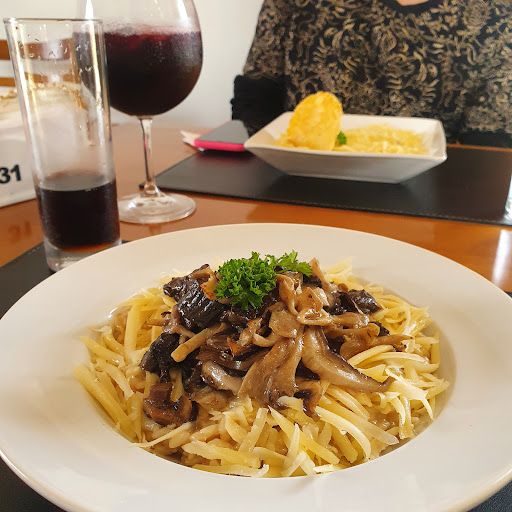 O risoto com boa cocção, mas péssima execução; extremamente oleoso, a ponto dos grãos não ficarem juntos, como se espera de um risoto. Forçou a barra no azeite para regenerar ou temperar o mix de cogumelos que vem sobre o risoto. Fato: estragou a digestão do prato. E o parmesão ralado em toletes, bem distante do que pede uma apresentação de risoto, no qual, inclusive, o parmesão TEM que ser opcional.