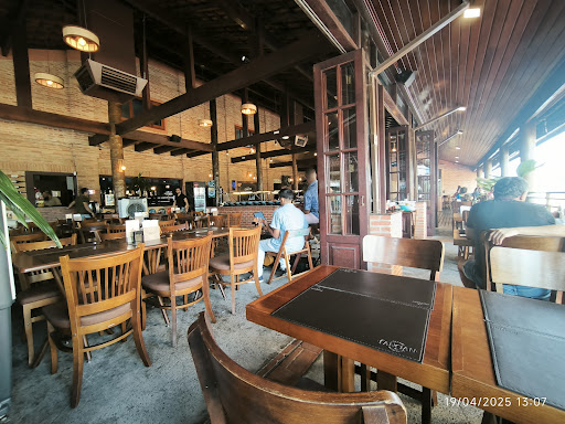 Vale a pena, apesar de algumas coisas que poderiam ser revistas… Fomos em um sábado experimentar o buffet de feijoada, não havíamos lido nada sobre a casa e não conhecíamos o serviço. Chegamos antes das 12h e não estava muito cheio. De cara, o ambiente é agradável, um enorme casarão bem arrumado, bem espaçoso, com uma banda tocando um pagode anos 90 bem agradável. O garçom que nos atendeu explicou como funcionava o serviço de buffet, R$79 no modo self-service a vontade. Ai entra o nosso incômodo: uma das nossas convidadas não tinha tanto interesse em comer muito, preferia ficar nos drinks e na cerveja, por isso consideramos uma falha a casa não dar a opção de self-service por quilo. No buffet, uma mesinha de entrada com caldos e inclusive duas jarras de caipirinha (nota 10), diversos caldeirões de feijoadas (opção só com calabresa, só com costelinha, com paio, com pé e orelha, etc…), várias opções de linguiças (uma apimentada no molho de laranja que estava deliciosa), uma leitoa a pururuca que, naquele momento, já estava “estraçalhada”, e uma opção de massa. Havia também um salmão com legumes, que estava absurdamente seco e difícil de comer (por ficar ali, em fogo aceso, o salmão acaba passando do ponto muito fácil). Na mesa de sobremesas, opções absurdamente doces, vai agradar quem gosta de açúcar no máximo da violência. Optamos por sentar no ambiente externo e achamos que, diferente do salão, aquele espaço não recebe tantos cuidados: as mesas não estavam tão limpas e nem os guardanapos pareciam ser trocados com frequência. Os garçons, apesar de educados, ficam bastante perdidos. Quando pedi uma Gin Tônica com limão, um deles fez cara de paisagem, sem entender o que eu estava pedindo. Quando o drink chegou, era um Tropical Gin com laranja (?). Ao pedir a conta, é preciso paciência: ficamos mais de 20 minutos esperando! Obs: o restaurante oferece estacionamento e é...
