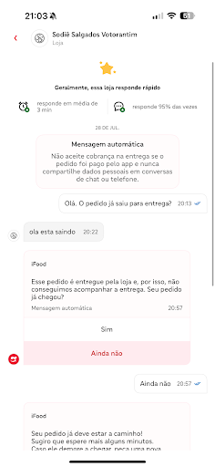 CONSUMIDOR: eu já tinha olhado o IFOOD e perguntei... UE e se eu pedi-se pelo IFOOD? Como vocês fariam?