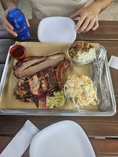 This place was really great! The brisket was super tender and the bbq sauce was really good. It was like being back home in TX. We got the potato salad and mac ‘n cheese as sides and they were really great also. My daughter was super excited to actually find Mac ‘n cheese in Brazil! The outdoor seating was great, and we found it really enjoyable.