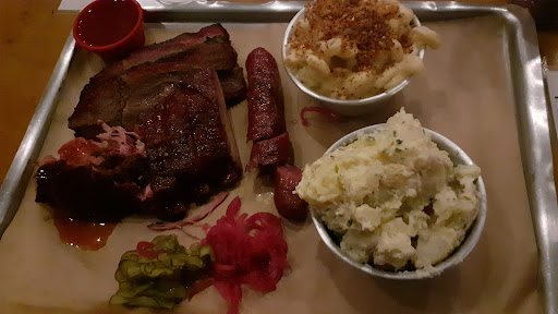 Read moreHoje tivemos nossa primeira experiência no Sophie’s BBQ e simplesmente amamos. Desde a nossa chegada ao local fomos recebidos com uma simpática atendente a qual nos direcionou para a mesa. Nos explicou sobre o cardápio e sugeriu o carro chefe. Como estávamos com desejo de comer pulled pork e brisket fomos de carro chefe mesmo - a bandeja para duas pessoas que inclui: pulled pork+ brisket +linguiça do dia ( bovina e suína com mostarda)+ costelinha com molho barbecue, além de mais 2 acompanhamentos pelos quais escolhemos coleslaw e ragu de bochecha bovina confitada e desfiada servida com arroz branco. Tudo estava simplesmente delicioso e as porções são muito generosas. Atende perfeitamente 2 pessoas com muita fome. Para a sobremesa, fomos de cheesecake de frutas vermelhas que também estava sem palavras de delicioso. Um dos melhores que já comi. A música ambiente é de ótimo bom gosto e numa altura excelente onde permite você conversar tranquilamente. Recomendamos a experiência pela gastronomia americana, atendimento, custo benefício, já que para duas pessoas com bebidas não alcoólicas gastamos um total de menos...