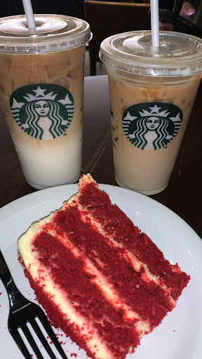 Read moreAmo! Sempre que posso passo para pegar um Macchiato gelado de caramelo com essência de canela (juro, fica uma delícia) e esse bolo Red Velvet é tudo. São sempre muito rápidos para entrega dos pedidos e as mesas estão...