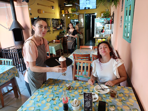 Lugar bem diferenciado, propositalmente feito para você se lembrar da casa da sua avó, rsrs. As mesas são de madeira lixada ou de construção, assim como as cadeiras, com toalhas que lembram muito os anos 80 e 90, iguais nossas avós utilizavam, bastante flores naturais penduradas, alguns objetos retrô espalhados pelo recinto dão um ar diferenciado ao local, o café coado na mesa em coador de pano é o máximo, do odor ao sabor! Os lanches são bem saborosos e chamativos, experimentei alguns e gostei de todos. De revés eu achei apenas o lugar bem pequeno e na ocasião ventava bastante e me deu um pouco de frio, mas não atrapalhou a...