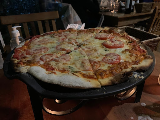 A pizza em si é gostosa, mas não é “uau”. É diferente da tradicional pizza de São Paulo (estilo Braz, 1900, Camelo). A massa é crocante, não me parece ser de fermentação natural e longa, pois a borda não estufa e não é macia. Ela é servida numa pedra que fica cima de uma vela, então se mantém aquecida. A salada estava maravilhosa (caprese). Azeite de ótima qualidade tambem.