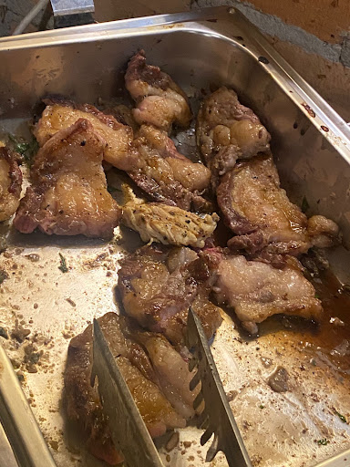 As comidas, não eram suficientes e em menos de 30 min ao servir a primeira leva de pessoas, já não tinha nada e os convidados ficavam em filas aguardando por um bom tempo a "reposição", que vinha dentro de bacias transparentes que mais pareciam tampas de suporte de bolos (aquelas transparentes) a carne que o restaurante leva o nome "boutique de carnes", era 90% gordura, 10% carne, como é possível verificar na imagem abaixo, falta de respeito total com os clientes que ali estavam!