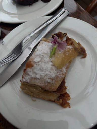 O grande destaque do cardápio é, sem dúvida, o strudel de maçã. Servido quentinho, com a massa delicadamente crocante e um recheio equilibrado entre o doce da maçã e o toque suave da canela, é uma verdadeira viagem à tradição europeia com alma brasileira. Outro tesouro da casa é o bolo de coco, uma receita caseira que derrete na boca e exala o sabor do interior, remetendo àquelas tardes preguiçosas na casa da avó.