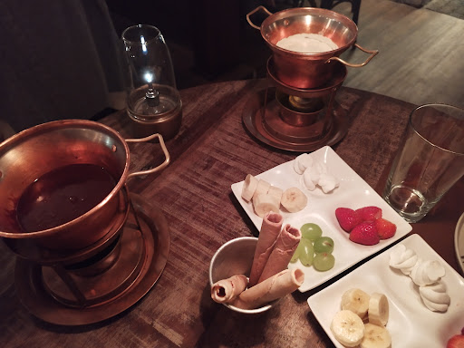 Read moreJá conhecia a unidade do Morumbi e a de Campos superou todas as expectativas! Fomos comemorar nosso aniversário de casamento e foi tudo simplesmente perfeito! Pedimos o rodízio Premium que compramos no site com 10% de desconto. O rodízio faz jus ao nome, não tem miséria não, pelo contrário, os acompanhamentos do fondue são deliciosos e em grande quantidade, nem conseguimos comer tudo! A batata de acompanhamento era um diferencial, muito gostosa! E fiquei muito feliz de servirem goiabada porque eu simplesmente amo goiabada com fondue de queijo! Pedimos 4 tipos de fondue salgado: o original, de parmesão, cogumelos e alho. O de alho e o original foram meus preferidos! E também comemos filé mignon com vinho, que para minha surpresa estava sensacional!!! A carne derrete na boca. E os fondues doces realmente completam a experiência, na verdade eu diria que são a marca registrada do chalezinho, é o diferencial. Você até encontra fondues salgados tão bons quanto os do chalezinho, mas os doces... Impossível! Divinos! Comemos o de Lindt e o de Nutella com ninho, que conseguiu superar o de Lindt. Sensacional! Uma pena que não consegui experimentar mais nenhum outro, estava completamente satisfeita, não cabia mais nada!!rs O atendimento é um show à parte, é um grande diferencial. Destaque para a Nelly e Mirian que nos atenderam maravilhosamente bem. E para completar toda essa experiência, um violonista deixou a noite ainda mais especial! O local é super aconchegante e apesar de termos feito reserva para a área interna, não gostamos muito da nossa mesa e pedimos para trocar para a área externa e eles nos atenderam e nos mudaram para uma mesa muito melhor! Sobre o preço: é caro? Sim, sem dúvida! Sua conta não vai dar menos que 600 reais por casal. Só que é uma experiência maravilhosa, única, é algo que você não fará todo dia, é um restaurante para ocasiões especiais, para ficar registrado para sempre na memória! E com certeza nosso aniversário de casamento não poderia ter tido uma comemoração mais especial! Mas vale o preço que se paga, pois tudo é de muita qualidade e muito farto. Por fim, duas sugestões que eu gostaria de dar para o restaurante: ter uma carta de vinhos com alguns rótulos mais acessíveis (não tem nenhuma garrafa por menos de 150,00) e ter opção de rodízio de fondue somente doce, pois eu queria muito experimentar todos os tipos mas não consegui! Já estava super satisfeita e tive que comer pouco do fondue doce, o que me deixou...