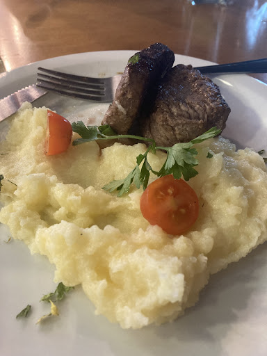 Read moreEstou me "divertindo" lendo as avaliações de 1 estrela do restaurante. Tem pra todo gosto: hambúrguer? Seco com carne esturricada! Tornedor? Corte fino como de um dedo mindinho e sem o molho madeira! Fondue? Queimado e pobrinho, pobrinho... Minha experiência é só mais uma, então, vamos a ela. Esperamos por mais de 40 min por um pedido simples, mignon e tornedor. Após uns 20 min de espera, os pedidos da mesa ao lado começaram a chegar, o primeiro hambúrguer voltou para a cozinha, não sei porque... mas retornou à mesa apenas uns 15 minutos depois. Da mesma mesa, uma Salada Caesar voltou 2 ou 3 vezes à cozinha, faltou frango, faltou molho. No fim acho que o cliente se resignou e aceitou o que veio. O último pedido da mesa chegou quando todos os os outros já tinham terminado de comer. Mas se eu sei disso é porque tive tempo para observar o fluxo do restaurante nos 40 minutos esperando meu pedido, que foi modificado porque não tinha água com gás, chopp e costela (que eu saiba). Não tinha também o corte tornedor que pedimos, aliás, ainda bem que já tinha visto tornedor alguma vez na vida porque se dependesse dos atendentes, comeríamos escalope como se fosse tornedor. As carnes que pedimos vieram secas e passadas. Sobre os acompanhamentos, arroz velho e sem gosto, purê pedaçudo e o molho madeira no tornedor, esqueceram de colocar, aparentemente. Não entendo como o restaurante pode funcionar, quanto mais ter uma boa avaliação sequer. Não recomendo e faço questão de recomendar que ninguém...