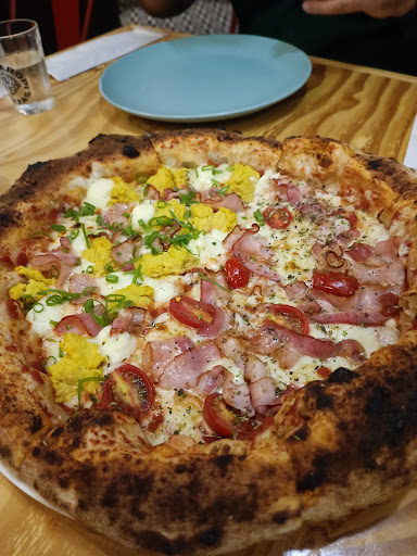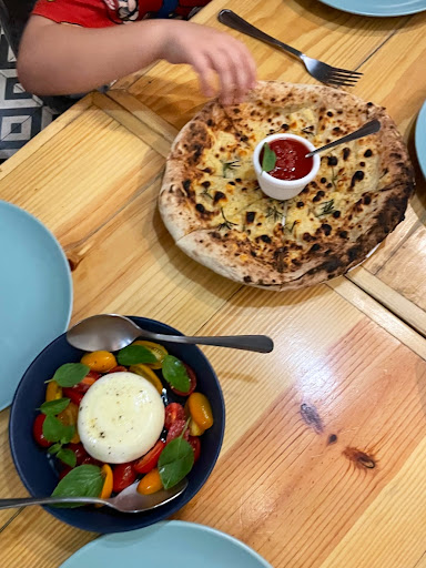 Read moreUma das melhores pizzas que já comi na minha vida, sem exagero algum!!! Massa perfeita, fininha na base e com uma borda super gostosa e leve. O cardápio conta com sabores variados e criativos, cada um mais apetitoso do que o outro. Pegamos a burrada de entrada, que estava super cremosa e acompanhada de uma massa de pizza fininha com alecrim e sal e molho pesto ao lado.