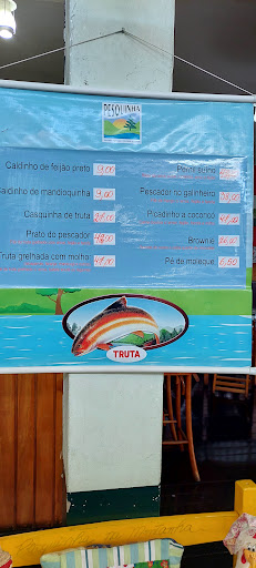 Estivemos no mercado municipal de Campos do Jordão dia 2/05 para almoçar. O ambiente é simples, um galpão grande com muitas lojas, como frutarias, bares, pastelarias, restaurantes. Há banheiros gratuitos no local e estacionamento na lateral, do lado de fora, normalmente bem tranquilo de deixar o carro.No Pesquinha sentamos e pedimos duas meia trutas com batatas e molho de alcaparras, o prato vinha também com arroz. Havia apenas uma pessoa servindo e sentimos que as refeições demoraram um pouco para chegar a mesa, mas nada que causasse aborrecimento a nós dois. Achei o arroz e a batata um primor!!! A truta estava bem gostosa e com uma casquinha crocante. Senti apenas falta do molho de alcaparras, pois sinto que a manteiga dá mais suculência ao peixe e só notei as alcaparras mesmo, não havia manteiga. Fora isso, tudo muito bom e a moça que nos atendeu muito educada e gentil. No final nos levantamos e efetuamos o pagamento no balcão. Detalhe: só aceita dinheiro ou Pix, nada de cartões então...
