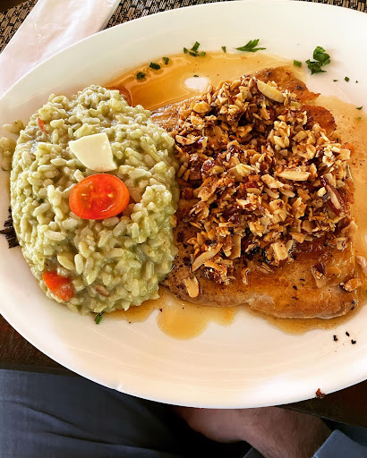 Como se não bastasse, o prato do meu marido veio errado. Ele pediu a truta com molho com amêndoas, mas veio com molho de pinhão (ele não come pinhão). Avisamos o garçom, que ficou de trocar o prato. Em vez de eles trocarem por outro peixe, simplesmente jogaram o outro molho por cima, pois continuou com vários pedaços de pinhão.